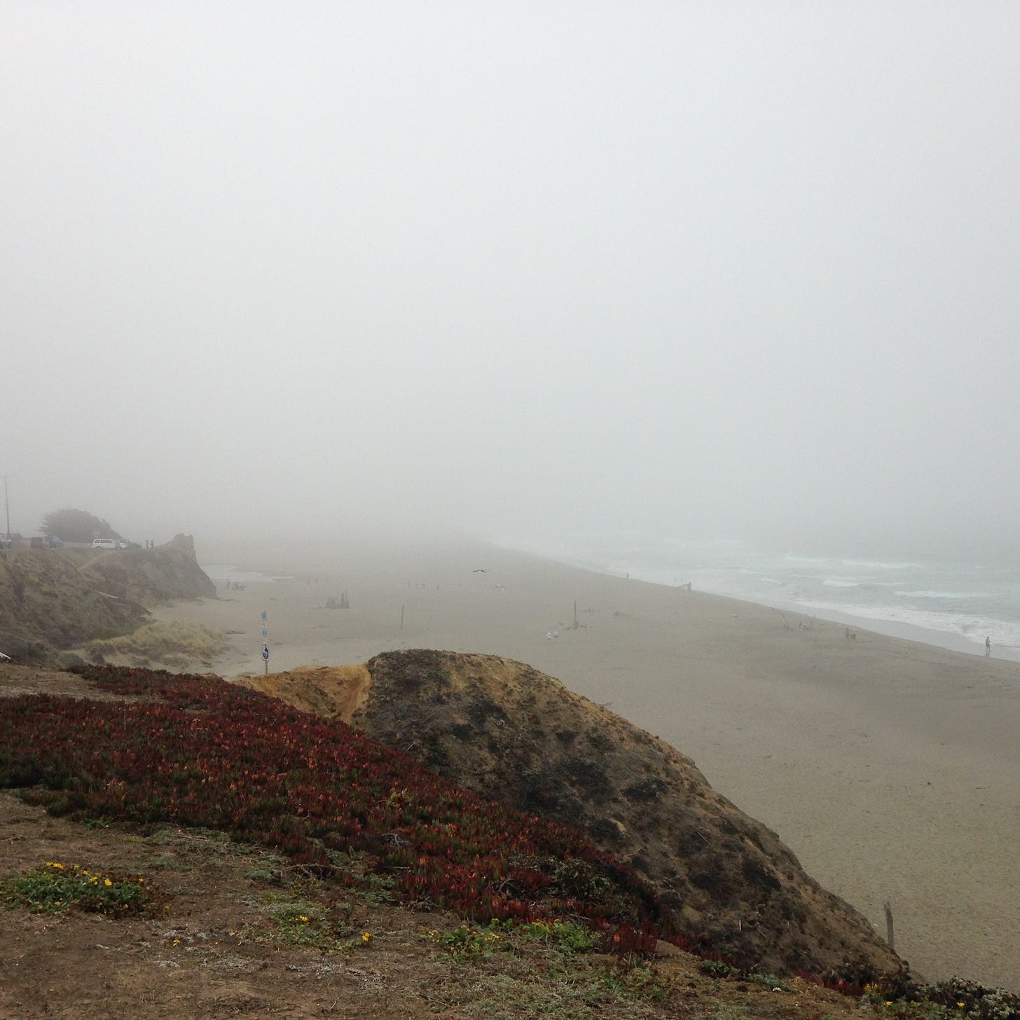 The waves rolled in and she sat staring at the sky. Marine layer day – grey in the morning. Must be June in San Francisco. The fog will show itself later. The sky meets the sea with a blurred line, but she could hear the waves roll in. The gulls flew by shouting at the sky. Dipping and diving into the sea for a snack. They dart through the misty morning and call to each other. What do they say?